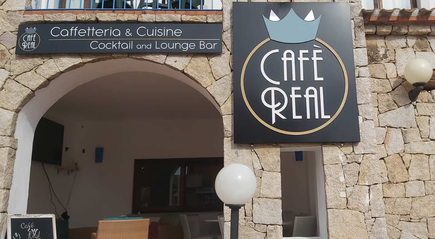 El Cafè Real es también el lugar ideal para tomarte un descanso durante el día: un café aromático, un aperitivo con vista a Porto San Paolo o una bebida después de la cena, en un ambiente agradable y relajado.